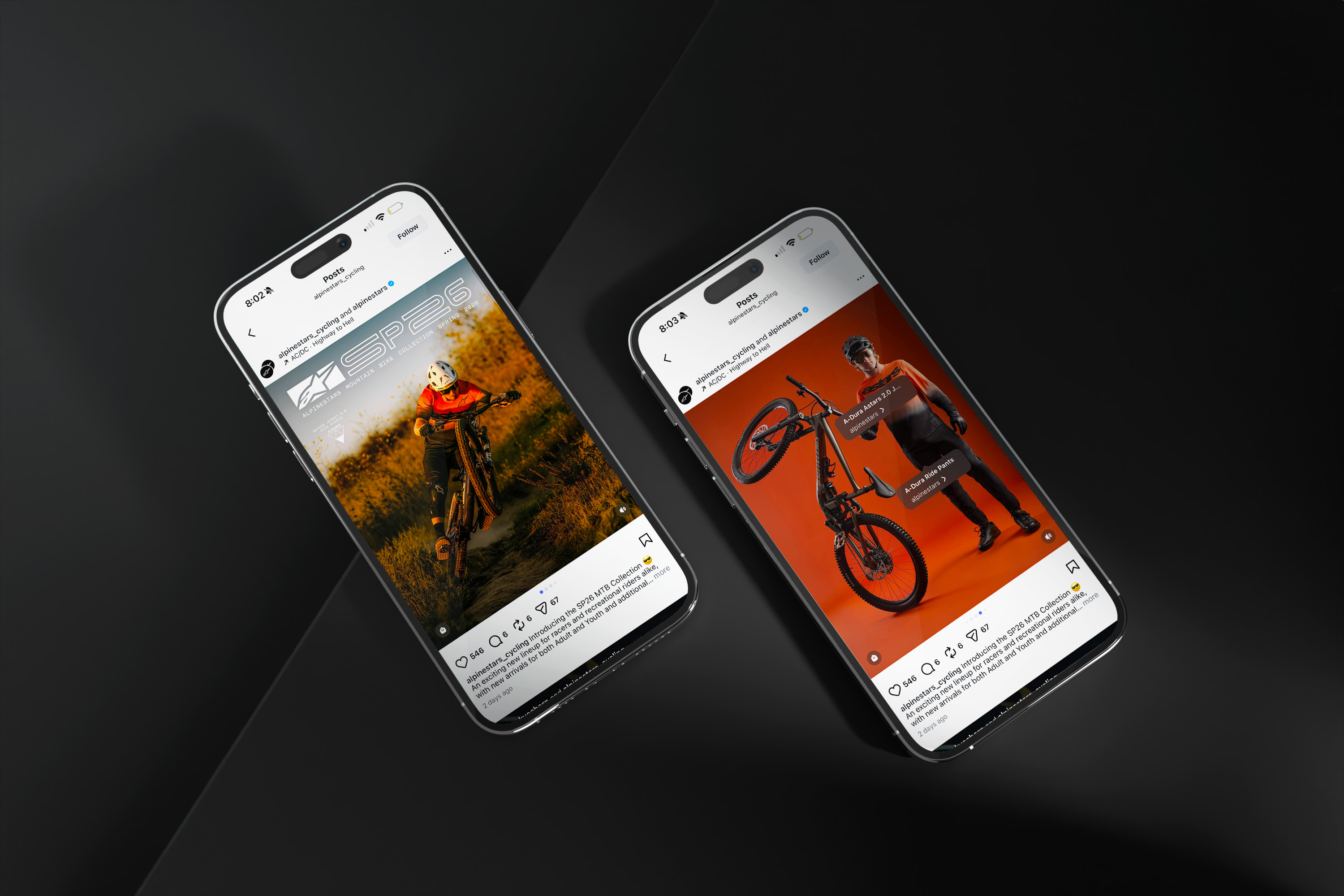 Alpinestars Spring 2026 Mountain Bike Collection - Key contributions included logo design, graphic design as applied to social media and web assets, photo retouching, and hands-on assistance throughout studio and action photoshoots. I also assisted with capturing slow-motion video throughout the action shoot, which was included in the final campaign video.