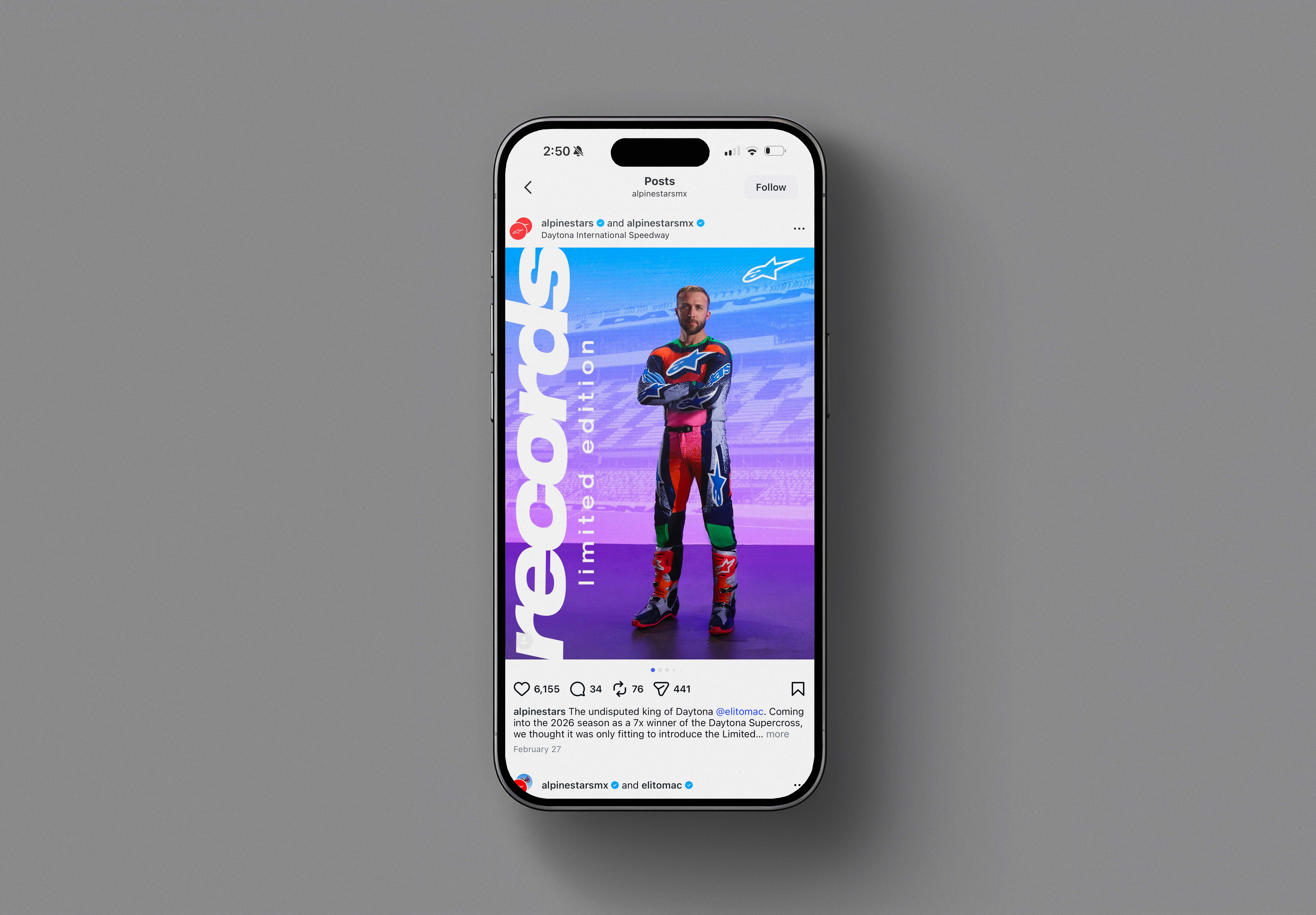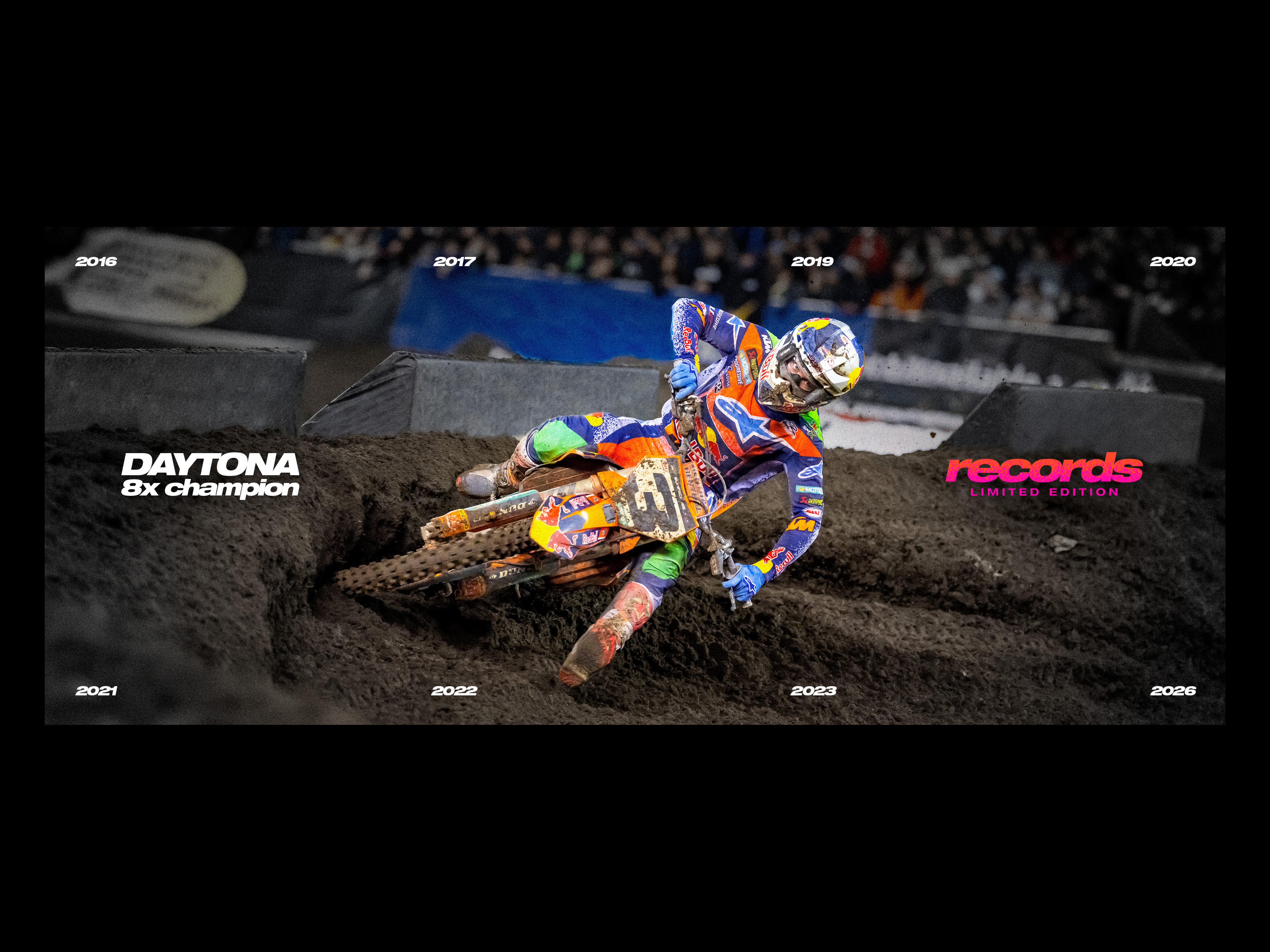 In February of 2026, I had the pleasure of contributing to the creative direction, logo design, graphic design, and photo retouching for the Alpinestars 'Records' Limited Edition campaign. Centered around the 2026 Daytona supercross race, the collection was intended to honor Eli Tomac's record breaking legacy of 8 career Daytona victories. The campaign's final assets included primarily social media and web-based marketing materials, with contributions including marketing emails, web banners, website landing pages, social media assets, etc.